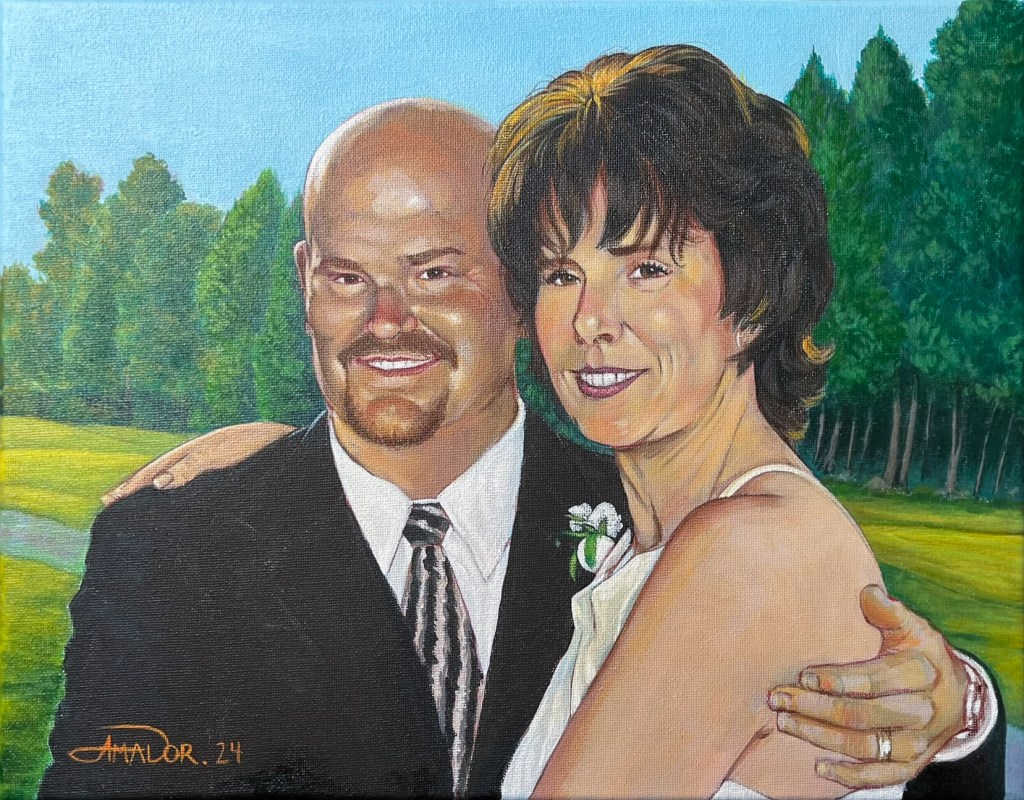 When it comes to creating custom art, the most rewarding projects often come from those closest to us. Recently, I had the pleasure of working on a very special commission for my neighbour and friend, Steve. In celebration of his 20th wedding anniversary, Steve requested a custom portrait of himself and his wife, Kathy.